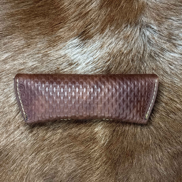 Ručne vyrobené kožené puzdro na okuliare z kvalitnej hovädzej kože. Každý kus vzniká tradičnými remeselnými postupmi – ručné rezanie, tvarovanie, zdobené a šité. Puzdro je zdobené jemným tlačeným vzorom a uzatvárané kovovým cvokom, ktorý spoľahlivo drží okuliare na svojom mieste.